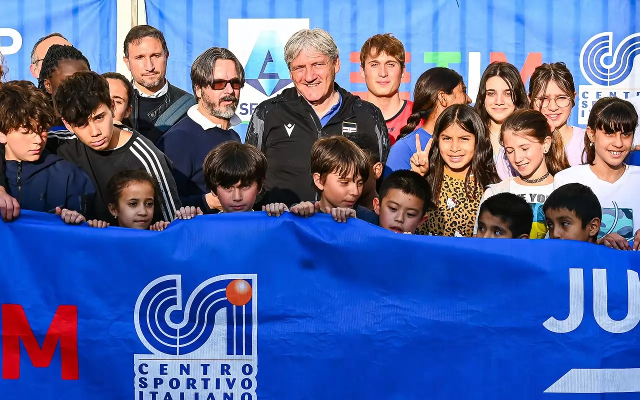 Some of the children involved in the Junior TIM Cup, a football tournament for Under 14s sponsored by the Lega Serie A, TIM and Centro Sportivo Italiano, had the chance to meet Sampdoria Primavera coach Felice Tufano at the Oratorio La Salle in Genoa.