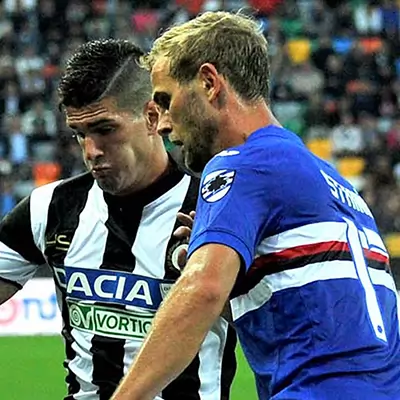 Marco Giampaolo stuck with the same side that beat AC Milan but it was the hosts who made the better start. De Paul and Maxi Lopez had early efforts albeit without success. Doria responded on 12 minutes yet former Udinese man Zapata’s progress was checked by Nuytinck. The Blucerchiati grew into the half but just when it looked like Samp were on top, Udinese took the lead. With 18 minutes to play in the first period, Puggioni came out recklessly, caught Maxi Lopez and the referee pointed to the spot. De Paul made no mistake from 12 yards.