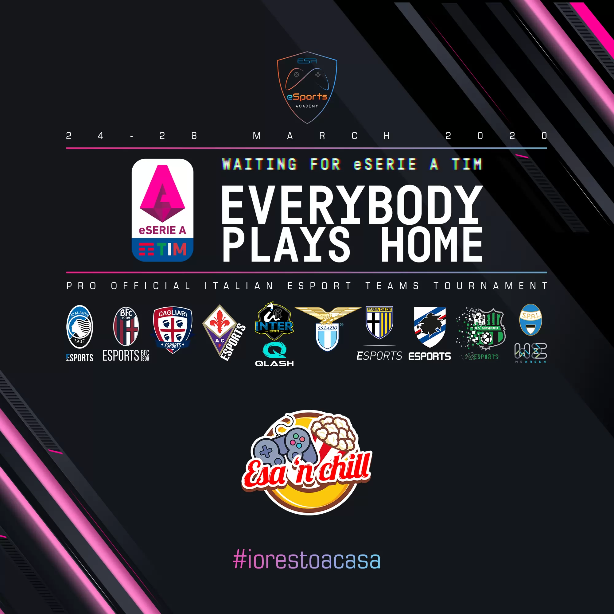 Dopo la fase a gironi, oggi si torna su FIFA 20 per il torneo organizzato da ESA (eSports Academy): Everybody Plays Home. Una sorta di aperitivo in attesa che la eSerie A TIM sbarchi finalmente sugli schermi di tutta Italia una volta che il Coronavirus-COVID-19 sarà solo un brutto ricordo. Nel frattempo, la Sampdoria eSports di Mattia Lonewolf92 Guarracino ha ottenuto il pass per la fase a Playoff, ma dovrà vedersela nella doppia sfida contro l’Inter Qlash. Si comincia alle 18.00 con il primo round, poi subito il re-match. Di qui in avanti tanti testa a testa fino alla finale.
