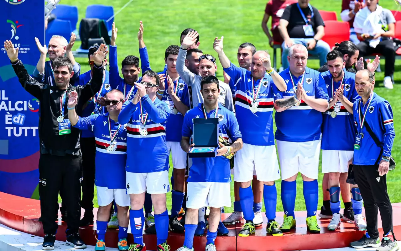 Inclusione. Una due giorni in cui la Samp for Special, prima classificata in Liguria, ha avuto l’onore di giocarsi il titolo di Campione d’Italia. La vittoria – alla fine – non è arrivata ma questo poco importa. L’importante è stato essere lì, con le maglie blucerchiate indosso, tra i 450 atleti e le 25 squadre partecipanti, a vivere un’esperienza da ricordare, all’insegna dello sport e dell’inclusione.