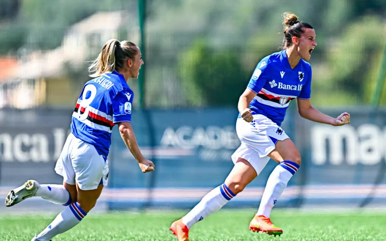 Seconda rimonta e seconda vittoria consecutiva per la Sampdoria Women. Al “3 Campanili” di Bogliasco la squadra di mister Cincotta batte 2-1 il Pomigliano: decisive le reti di Spinelli e Rincón. La partita è subito frizzante e a ritmi sostenuti. La prima occasione (8′) è blucerchiata con un colpo di testa di Baldi, ma dopo soli due minuti è il Pomigliano a passare con Tati. Il pareggio arriva su punizione al 25′: Spinelli, dalla sua mattonella, colpisce col mancino la traversa e insacca l’1-1 alle spalle di Cetinja. Nella ripresa la Samp è subito aggressiva con capitan Tarenzi, che al 3′ colpisce la traversa. Anche le ospiti vanno vicine al gol con le ex Martínez (14′) e Novellino (17′), ma in entrambe le occasioni è brava Tampieri ad opporsi. L’episodio chiave arriva poi al minuto 26: Tarenzi guadagna un rigore e Rincón trasforma: come a Sassuolo il risultato è ribaltato. A punteggio pieno in classifica, ora le blucerchiate affronteranno in trasferta il neopromosso Como Women.